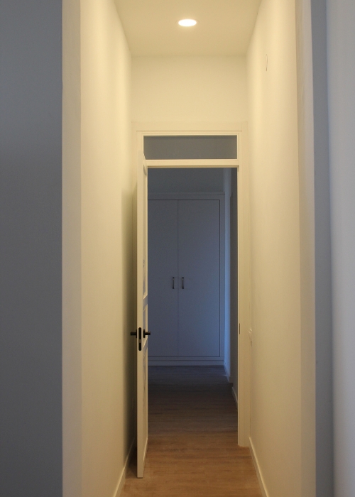 • Carpintería interior: puertas interiores nuevas lacadas en blanco y armarios empotrados de nueva ejecución con puertas lacadas.