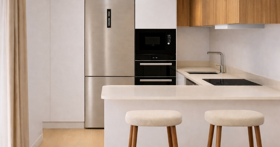 Las cocinas con península son la opción más equilibrada para quienes desean mantener cierta separación sin renunciar a la amplitud visual.